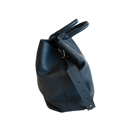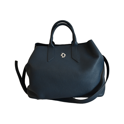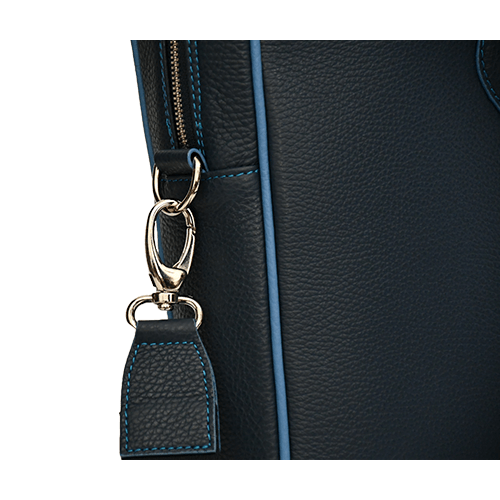 Borsa donna dal design pratico e raffinato, realizzata in pelle pregiata nel colore blu notte. Dotata di comoda tracolla regolabile e rimovibile, attrezzata internamente con porta computer e comode tasche.