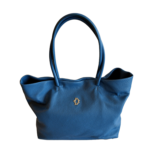 Borsa shopping manager essenziale e capiente dotata di ampi manici. Realizzata in pelle pregiata colore blu chiaro.
