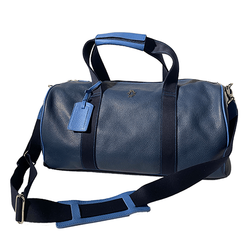 Borsone sport in pelle pregiata blu chiaro/blu scuro. Interno foderato ed attrezzato. In dotazione una tracolla coordinata. Ideale per lo sport, i viaggi e il tempo libero.