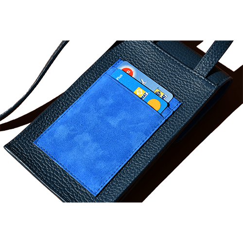 Dalla linea compatta e raffinata, il portacellulare Camera dei Deputati, in pelle e camoscio nella colorazione blu scuro/blu chiaro, è un accessorio indispensabile e funzionale per tenere sempre con sé tutti gli strumenti di lavoro. E’ dotato di chiusura con bottoncino automatico di sicurezza, di tracollina regolabile e, sul retro, di pratiche taschine portacarte per contenere carte di credito, biglietti da visita o documenti personali.