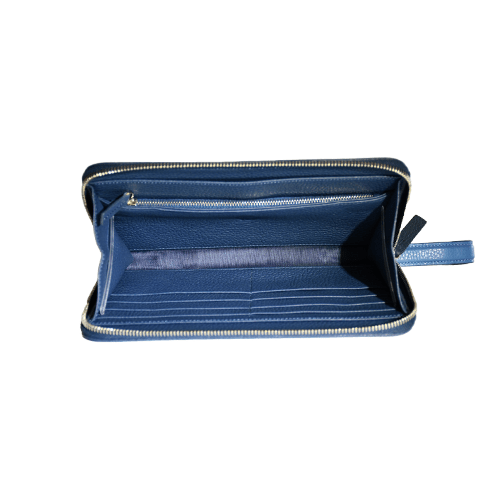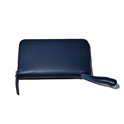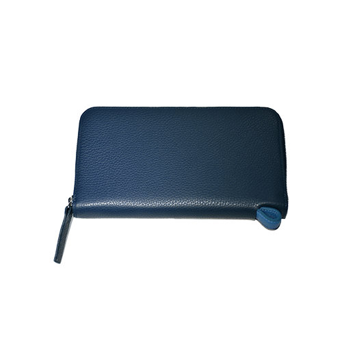 Design lineare e funzionale per il portafoglio donna Camera dei Deputati, realizzato in pelle bicolore blu chiaro/blu scuro. Internamente è dotato di pratiche tasche laterali portacarte/portadocumenti e comodi scomparti per le banconote, di cui uno portamonete con chiusura zip. Grazie al suo gancio estraibile e alla chiusura ermetica metallica, si può comodamente portare al polso oppure in borsa.