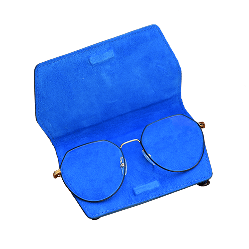 Linea essenziale e raffinata per il Porta Occhiali in pelle blu con interno in camoscio e cuciture blu chiaro. Dotato di chiusura magnetica, è alloggiamento ideale per ogni tipo di occhiale. Accessorio comodo ed elegante per custodire e proteggere gli occhiali con il minimo ingombro, senza perderli mai di vista!