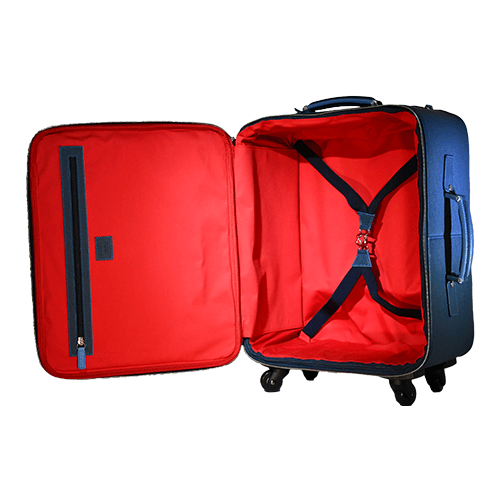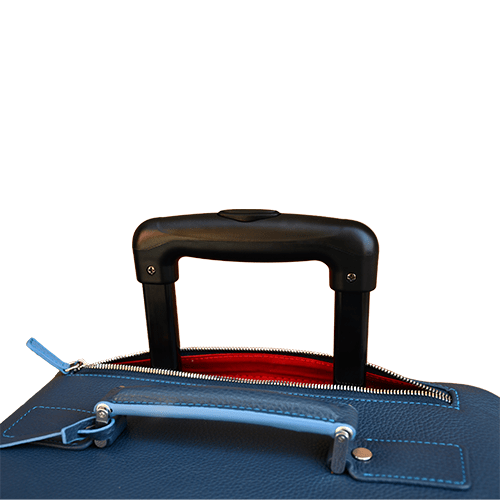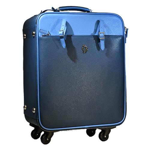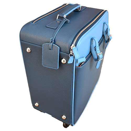 Trolley esclusivo e funzionale, ideale per viaggi di lavoro e di piacere. Realizzato in pelle pregiata nel colore blu chiaro/blu scuro. Interamente e finemente foderato all’interno, è dotato di pratiche tasche interne ed esterne, due cinghiette portaombrello e portariviste, etichetta personalizzabile, sistema rotante di ultima tecnologia con quattro ruote direzionabili a 360° e maniglia estraibile a doppia asta per la massima stabilità e un comodo trasporto. Tutto ciò fa di questo trolley un piccolo gioiello, curato nei minimi particolari.